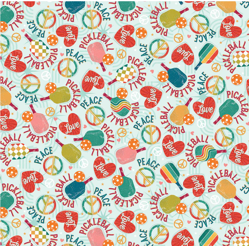 Product Description PEACE, LOVE, PICKLEBALL COLLECTION BY COURTNEY MORGENSTERN 100% COTTON 44/45" WIDE PRICED PER YARD