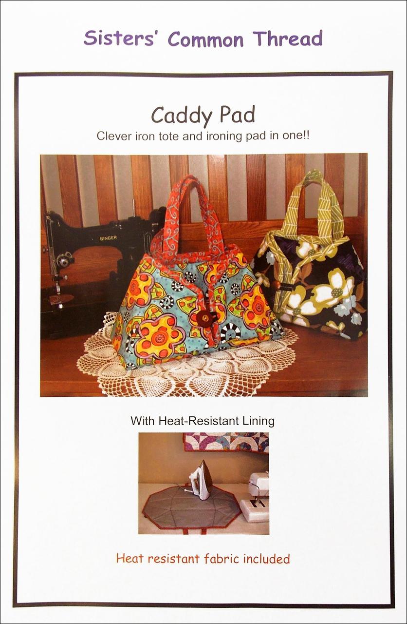 Product Description Sisters' Common Thread Caddy Pad is a clever iron tote and ironing pad in one! This particular pattern is sized for a full sized iron and it has heat resistant fabric included!