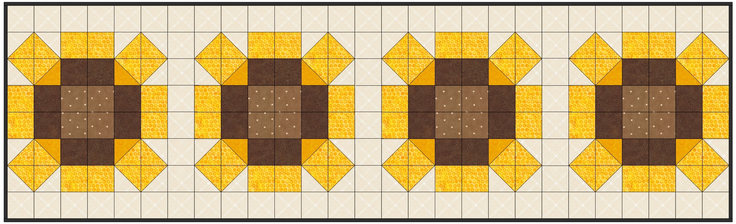 2″ finished: 16″ x 54″ (Cut 2.5″ Squares)